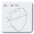 Wegen der Formtreue kann die Tür erst ausgesägt werden, wenn die Karosserie fertig ist. Beachte den Verlauf des Ausschnittes zu den innen liegenden Strukturen. Halte einem geringen Abstand von ca. 1 mm. Benutze zwei Scharniere oder ein Klavierband nach dem dargestellten Montageschema für die Tür.